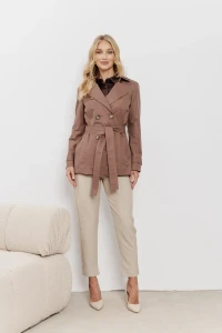 Krótki płaszcz – klasyczny trencz z paskiem – kolor cacao